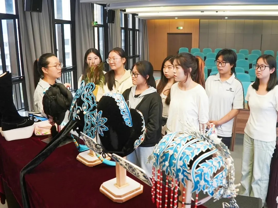 福建省芳华越剧院老师向兴趣班学生介绍越剧精美服饰