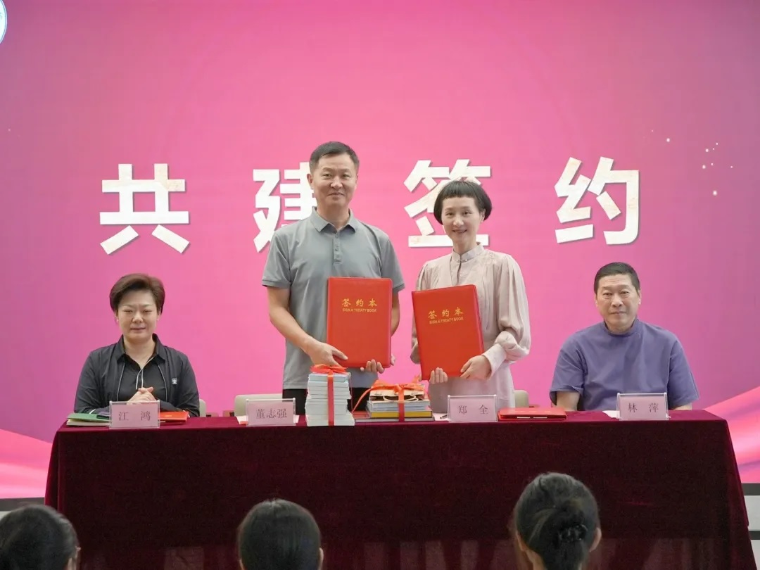 首先,董志强馆长、郑全书记和江鸿校长分别发表了热情洋溢的讲话。他们共同表示,此次共建合作是三方共同发展的良好契机,将有利于推动越剧艺术的传承与创新,加强校园文化建设,全面提升学生的艺术素养和审美能力。三方共同签署了共建协议,并互赠了书籍,标志着三方在资源共享、文化交流等方面的合作正式开启。