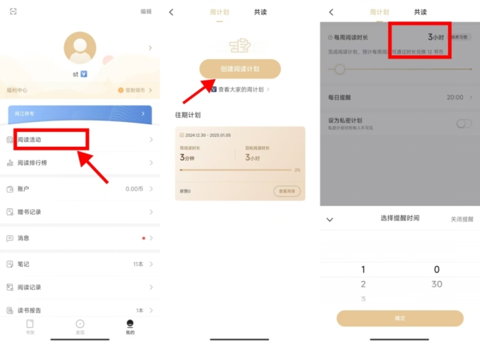 步骤三:进入阅读活动--制定个人阅读计划--完成阅读
