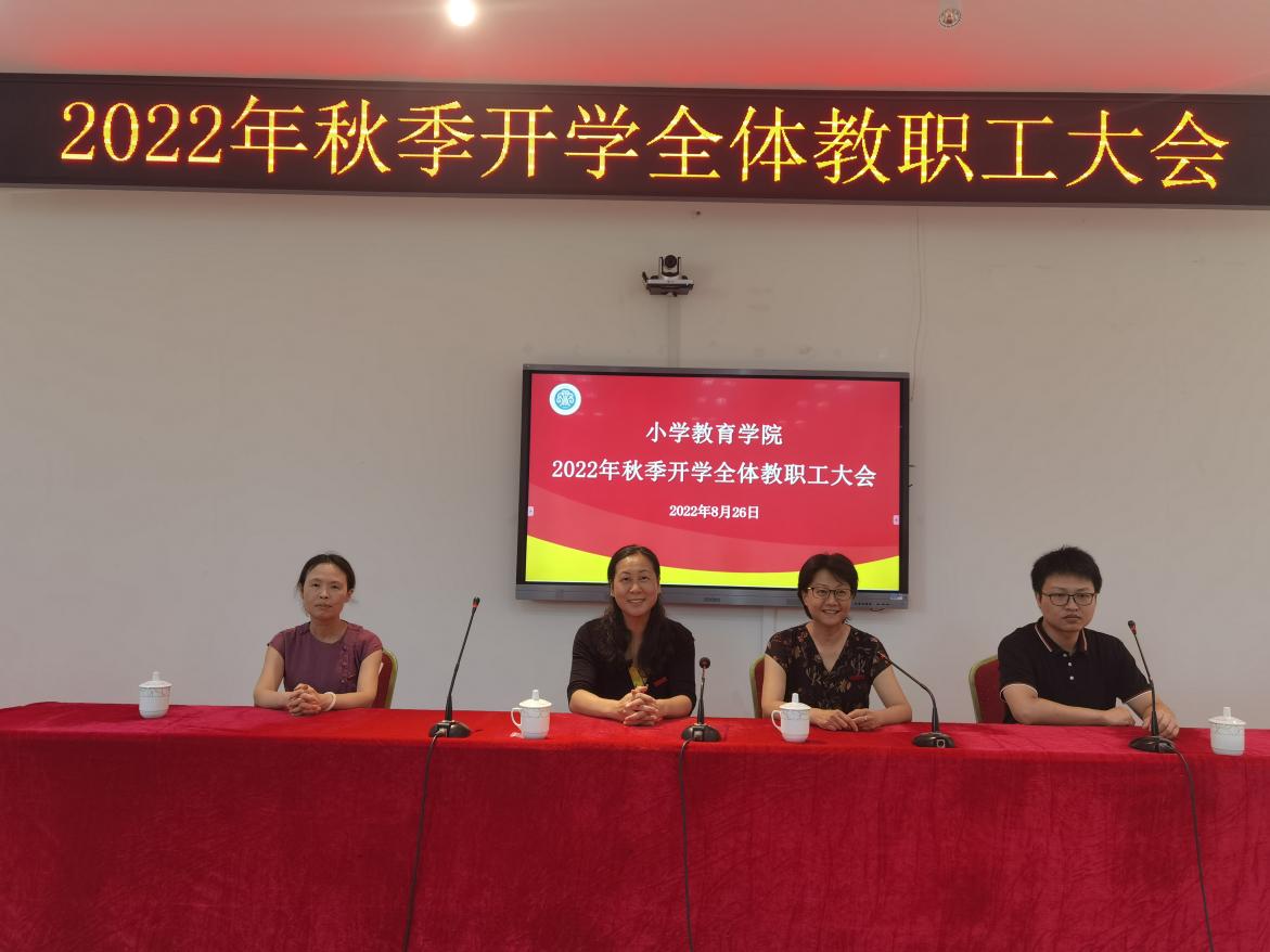 为贯彻落实学校2022年秋季学期工作会议精神,全面做好新学期各项教育教学工作,根据学校工作部署,结合我院教育教学工作实际,8月26日上午,我院在2018教室召开了新学期全体教职工大会。会议由张宁院长主持,小学教育学院全体教职工参加。