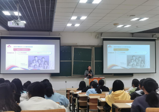 林旻副校长以生动活泼的人口小调查作为切入点,围绕“明确——人口问题系全局”、“明察——人口问题新特点”、“明理——人口问题辩证看”三个方面,让学生正确认识我国人口基本国情以及人口问题的新特点,充分阐释了当前我国人口发展面临的挑战及对策。