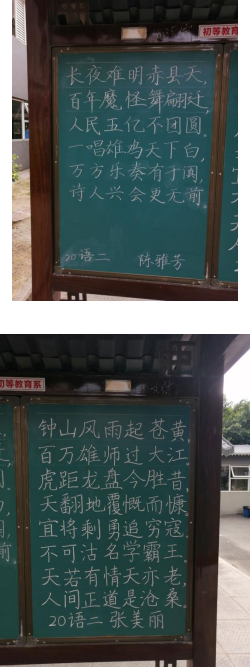 在此次“书写青春”书法交流活动中,同学们基本技能——粉笔字的书写得到了较好的呈现;同时也通过本次活动将普通话普及工作与学习、教学工作结合起来,提高了全系师生语言文字规范意识,为规范使用普通话,形成“两好”习惯——“说好普通话、写好规范字”,营造了良好的语言环境,构建和谐校园。但推普工作不止于此,在未来我系也会更加注重学生普通话的说与写的工作!
