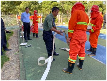 首先,消防演练教官对正确报警方法做了详细的讲解。其次,消防员就干粉灭火器的正确使用方法进行了现场讲解、示范、指导,强调使用灭火器要保持镇静,遇到火情千万不要慌乱失措,牢记“一晃、二拉、三压、四喷”要领,掌握正确的使用方法,提高自救自护能力,随后进行了消防栓及消防水带使用操作要领讲解、示范,强调要严格按照“开箱门、取水带、拿水枪、开阀门”的步骤去操作。