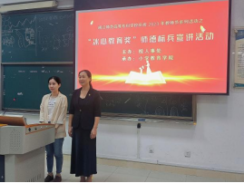 陈淑华老师从自身从教经历与冰心教育精神的契合之处谈起,阐释了对冰心大爱的理解。勉励师范生学高为师、身正为范,珍惜光阴,坚定从教信念,加强自身修养。吴铃老师讲解了冰心先生作为校友作家与我校的渊源,并从“作家”、“教育家”等身份走近冰心。结合自己为学从教的体会,为师范生传承冰心大爱和师道精神提供了可借鉴的方法。