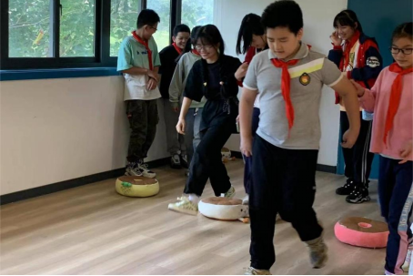活动中,最受欢迎的为“小小盲人”体验环节。同学们闭上眼睛,扮演小“盲人”,由指引者搀扶着跨过障碍物,体验盲人的出行。活动现场气氛活跃,在闭上眼睛的那一刻,同学们仿佛进入到了另一个世界,感受到了盲人生活的不易。有爱的世界,不会黑暗。在感知盲人世界的同时,也激发了同学们要尊重残疾人,关爱残疾人的想法。