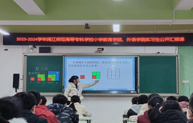 时光荏苒,闽江师范高等专科学校小学教育学院、外语商贸学院、数字信息工程学院的52名实习生,在屏山小学的教育实习活动已近三个月。在此期间,分属小学语文教育、小学数学教育、小学英语教育和现代教育技术等专业的实习生们,得到了屏山小学校领导、老师们全方位的指导、栽培,在课堂教学、班级管理、校园活动、思政教育等方方面面,都获得宝贵的经验传授和锻炼机会,实习生们亦能虚心求教、努力钻研、积极参加学校和所在班集体的各项活动,专业素养和教学能力都得到切实锻炼和明显提高。在教育实习行将圆满结束之际,小学数学教育专业的许冰洁、小学语文教育专业的吴欣怡和小学英语教育专业的张佳仪三名实习老师,以公开汇报课的形式代表实习队展示成果。