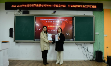 福州市屏山小学党委王羽书记、赖晓晴副校长、谢珍娟主任和闽江师范高等专科学校小学教育学院练怡副院长、外语商贸学院小学英语教育教研室尤佳主任出席了签约仪式。王羽书记和练怡副院长分别代表福州市鼓楼实验小学教育集团屏山校区和闽江师范高等专科学校,签署了合作协议。近两年来,屏山小学作为闽江师专实习生的教育实训基地,协助培养了一批优秀的师范类实习生,今后两校也将精诚协作,携手共进,继续为国家的基础教育事业培育人才。