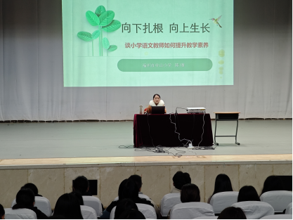 当天下午,陈瑾校长为我院2021级师范生做《小学语文教师如何提升教学素养》专题讲座。陈瑾老师结合自己多年来自身的奋斗经历向我们分享了教师素养对教师职业的深刻影响。她认为,“教师职业生涯就如同一棵树的成长,从埋种入土,到根伸茎长,再到开枝散叶、枝繁叶茂,最后到硕果累累。教师的职业生涯富有着生命的意义,蓬勃、向上,充满无限的可能与无穷的力量。”鼓励我院师范生不忘初心,扎实功底,提升素养。