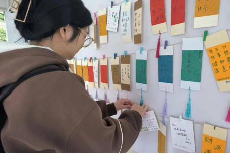 写好之后,大家将便签挂在“心愿墙”上,一张张充满温情的便签汇聚在一起,变成了一道亮丽的风景线,深深打动了每个人的心,也吸引了许多同学驻足拍照留念。