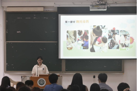 交流会伊始,同学们畅所欲言,黄雅萱、李香敏、陈印、吴雅雯等同学作为学生代表上台分享了自己的见习晚托心得。他们讲述了自己在晚托和见习活动中的成长经历以及通过实践所获得的经验与收获。李香敏认为师范生应当要理论实践相结合,通过见习班主任活动,迈出了理论学习者向理论实践者蜕变的坚实一步。吴雅雯认为晚托经历让她提前深入小学生群体,提前感受到教育工作的复杂性和挑战性。