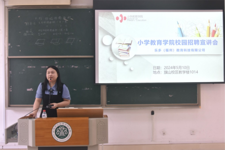 为积极响应国家“稳就业”、“保就业”决定部署,不断拓宽我院毕业生就业渠道,进一步提升学生就业质量。2024年5月10日上午,小学教育学院举办乐多教育(福州)有限公司校园招聘宣讲会,毕业班全体学生参与,会议由辅导员林丽芳老师主持。