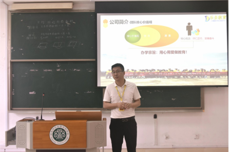 会上,乐多教育人力资源总监欧阳良才详细介绍公司发展历程、教育理念、业务范围、岗位要求以及薪资福利体系等情况。同时,欧阳老师还耐心解答了同学们关于食宿待遇、职业发展等方面的疑问,为他们提供了宝贵的建议。