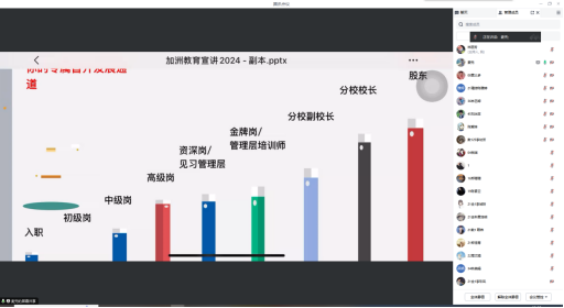 福建加洲教育位于福建龙岩,闽赣两省交界,地理位置优越。专注教育12年,公司旗下涵盖英语教育、家庭教育、语言类STEAM类。会上,加洲教育人力资源部主管、国家二级人力资源师林老师以PPT形式向同学们介绍行业发展前景、公司规模、人才培养体系,各项福利及薪资待遇详细说明,对学生提出的疑问一一解答,并为意向毕业生提供企业联系方式和投递简历渠道。
