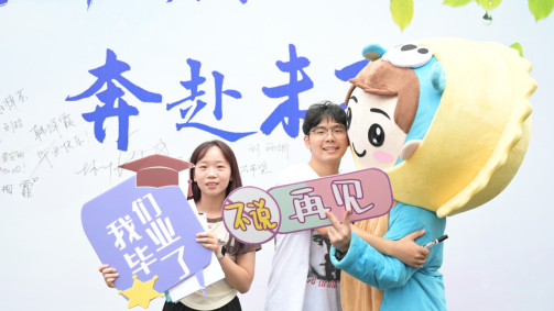 本次毕业季活动内容丰富,形式多样。师生在“签名墙”留下名字,一笔一划告白青春,见证难忘的毕业时光;毕业生和吉祥物囡囡仔仔花式打卡,定格时光。