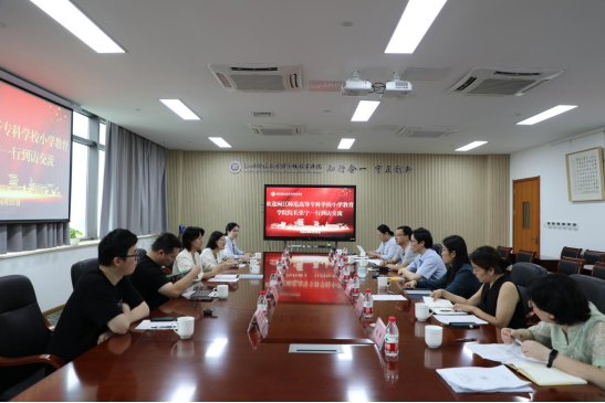 在杭州师范大学经亨颐教育学院,严从根院长介绍了学院的办学历史、建设规模、人才培养、建设成果等基本情况。张宁院长介绍了小学教育学院的基本情况和来访交流的目的。双方就人才培养、课程建设、实习实训等方面的经验做法展开了深入探讨。