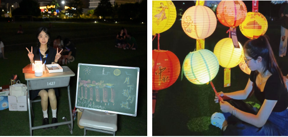 一轮明月悬挂空中,照亮了夜空。参赛者们通过书签抽取灯谜,有的谜面充满诗意,有的则充满趣味。同学们驻足思考,享受共猜灯谜的乐趣,同时还能收获精美灯笼作为奖励。