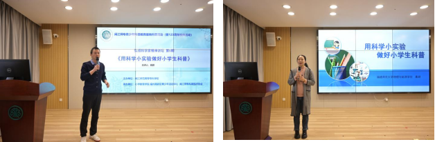 12月12日,闽江师专青少年科普教育基地“弘扬科学家精神讲坛”迎来第5场讲座。此次活动由小学教育学院、福州高新区青少年活动中心及闽江师专科协联合承办,是闽江师专121周年校庆的系列活动之一。讲坛邀请了福建师范大学戴颖老师开展“用科学小实验做好小学生科普”的讲座。会议由小学教育学院科学教师卓文豪主持,小学教育学院师生参与讲座。