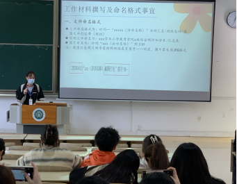 会议进行第一个环节:“提升技能,筑梦未来”班长业务培训会。本次培训会重点讲解了通知转发及撰写、工作材料撰写及命名格式两方面内容。与会过程中,办公室强调了班长工作内容规范的重要性,详细讲解了班长日常工作的规范和要求,并于最后进行总结和答疑。