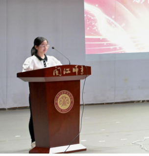 典礼在庄严肃穆的国歌声中拉开序幕。教师代表吴铃老师、新生代表叶乐瑶同学依次上台发言。
