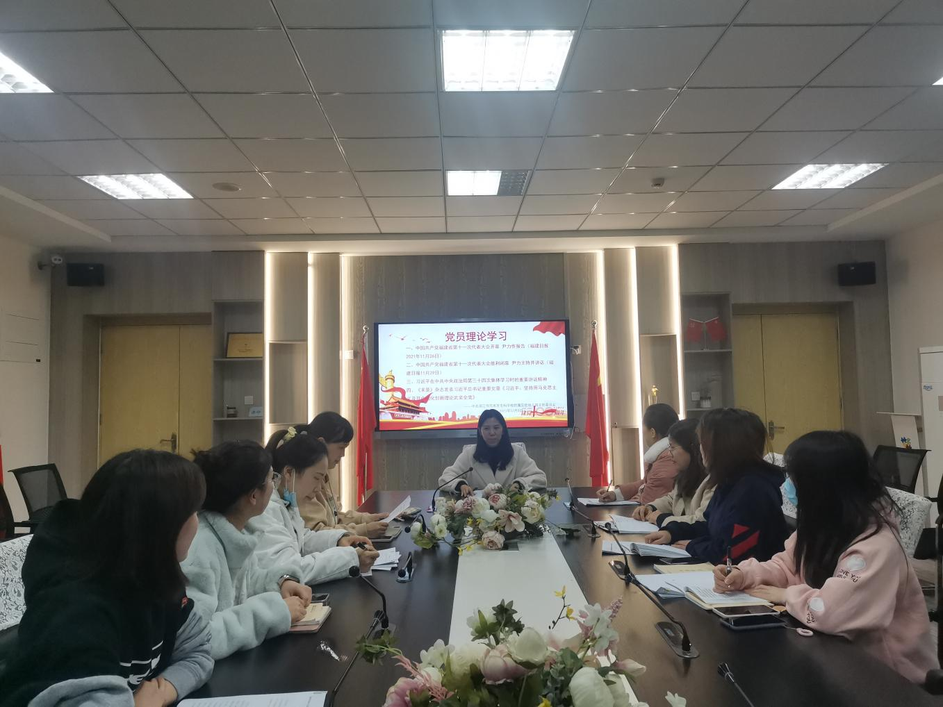 为了加强党员教师的政治理论学习,2021年12月8日下午,中共闽江师范高等专科学校附属实验幼儿园支部委员会召集全体党员开展理论学习,会议由叶丽莉副园长主持,全体党员参加。会议主要内容有:《中国共产党福建省第十一次代表大会开幕 尹力作报告》、《中国共产党福建省第十一次代表大会胜利闭幕 尹力主持并讲话》、《习近平在中共中央政治局第三十四次集体学习时的重要讲话精神》和《习近平:坚持用马克思主义及其中国化创新理论武装全党》。