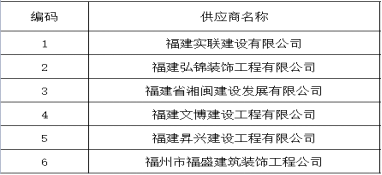六、闽江师范高等专科学校修缮工程项目施工供应商库编号表