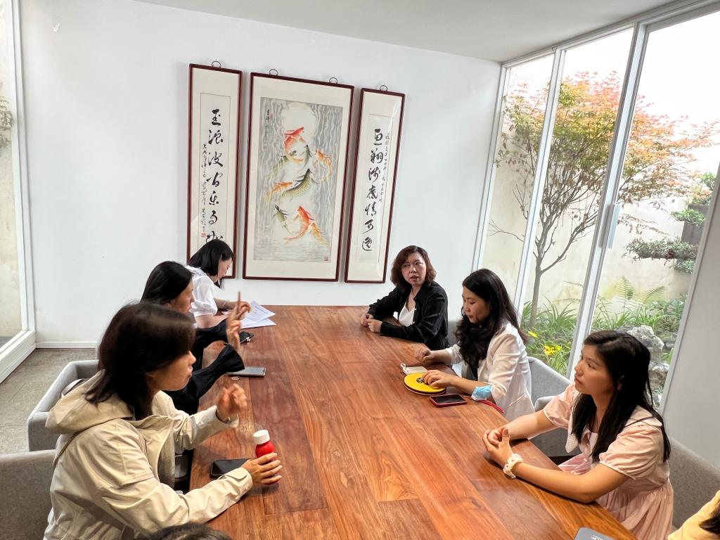 随后,我园党员教师与福建省直机关幼儿园党员教师就“六一画展”展开商讨,大家现场参观了雍和会红色驿馆,并根据驿馆情况,围绕“画展主题”、“画展引言”、“画展形式”、“画展海报”、“画展时间”等多个内容进行联动沟通,最终确立了六一画展时间轴,充分实现党建与业务的双向融合。