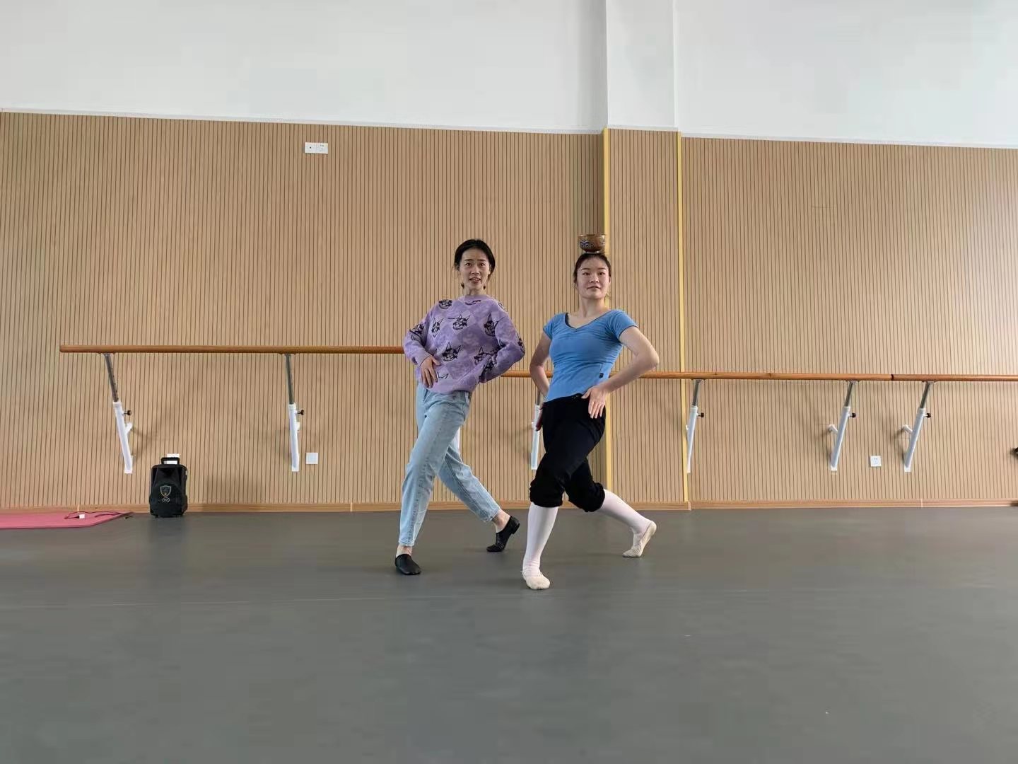 为了不间断训练,寒假期间指导老师利用网络课堂的优势给参赛选手进行线上指导,督促训练。学生入校后,指导老师利用课余及周末时间加强排练。训练中,指导老师对动作的要求一丝不苟、精益求精。她们一排就是几个小时。如果舞蹈教室没有场地,她们就在操场、空地找地方排练。老师高度负责的态度也深深激励着学生。师生共同努力,全力备战比赛。