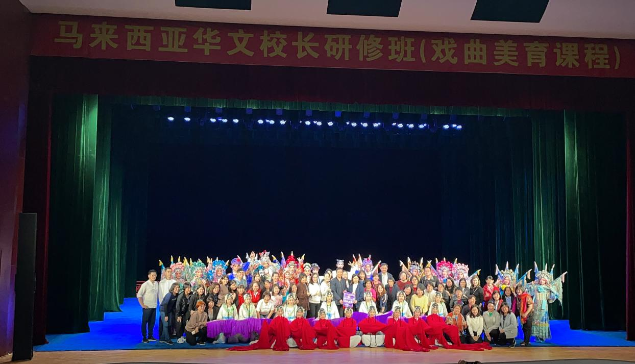 为夯实中马两国华文教育合作基础,推动马来西亚华文教育高质量发展;同时发挥熟悉中文和中华文化的优势,讲好中国故事,为推动中外民心相通、密切中外交流合作,促进中马两国文明交流互鉴,推动一带一路,构建人类命运共同体贡献更大力量。11月10日,在艺术学院(甘蔗校区)剧场,戏曲教研室全体师生共同为来自马来西亚的50名华文学校校长及管理人员开展了一次别开生面,与众不同的戏曲美育课程。