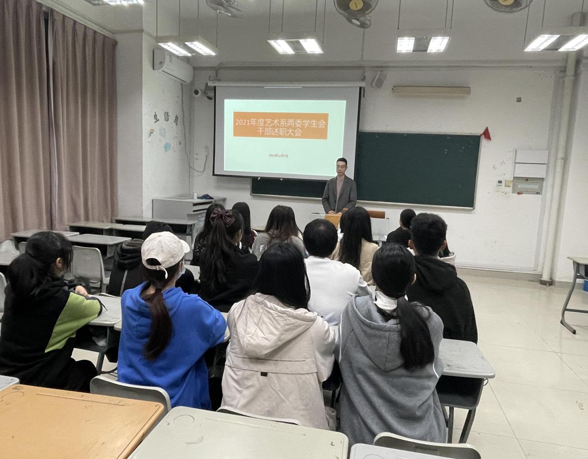 为进一步加强艺术系两委学生会自身建设,增强学生会干部自我教育、自我管理、自我服务、自我监督意识,提高学生会干部队伍的整体素质,我系团委于12月9日晚在教学楼4005教室召开系两委学生会干部述职大会。本次大会由艺术系两委学生会执行主席曹晓燕主持,艺术系团委书记周宇航与系两委指导教师禹亦凡参加了本次大会。