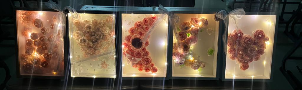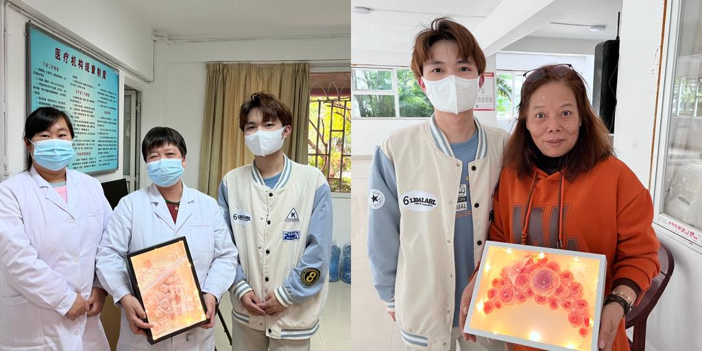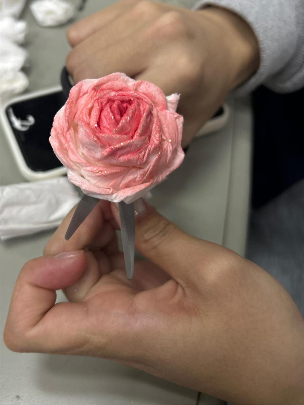 最后,从众多作品中筛选出了最受欢迎的5个作品,由学生代表以此为“美”的传递送给平时为学生服务作出重大贡献的医务室医生、宿管阿姨们,以花为媒介以表感谢、传递美好、献上祝福。同时也像阿姨们学习女性的独立,认真负责、富有爱心、自我关注、自我提高,以柔克刚的精神。