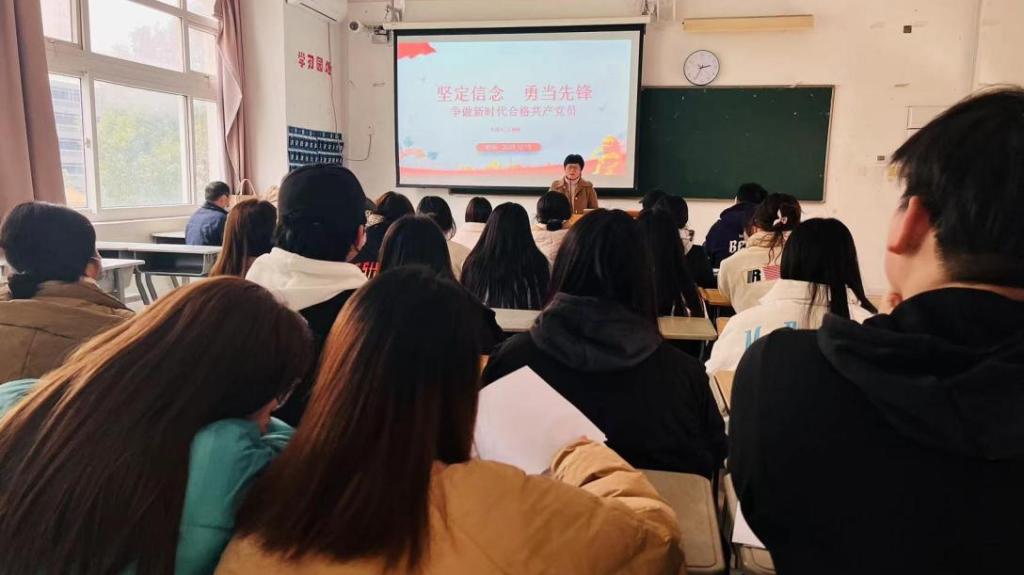 2023年12月19日,艺术学院学生党支部在教学楼2001教室召开接收预备党员大会,讨论通过接收詹诗因等4位同志为预备党员。艺术学院党委书记江柳青在会上上了一堂《坚定信念勇当先锋争做新时代合格共产党员》主题党课。会议由艺术学院党委青年委员、学生支部书记周宇航主持,艺术学院学生支部全体党员和入党积极分子代表参加。