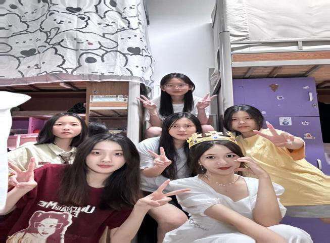 宿舍关系和谐,充满欢声笑语;宿舍成员积极向上,乐观开朗;积极遵守校规校纪,无违反纪律;平时注意卫生,每周轮流大扫除。宿舍是他们的第二个家,他们一同维护这个和谐、有爱的大家庭。