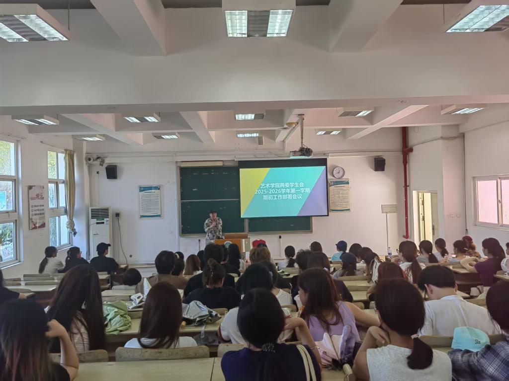 为科学谋划新学期学生工作,进一步凝聚学院两委学生会组织发展合力。2025年9月15日,艺术学院在旗山校区教学楼1014教室召开2025-2026学年第一学期两委学生会期初工作部署会议。会议由艺术学院团委书记周宇航主持,艺术学院副院长陈洪翔、学生会指导老师沈锦城及全体两委学生干部参加会议。