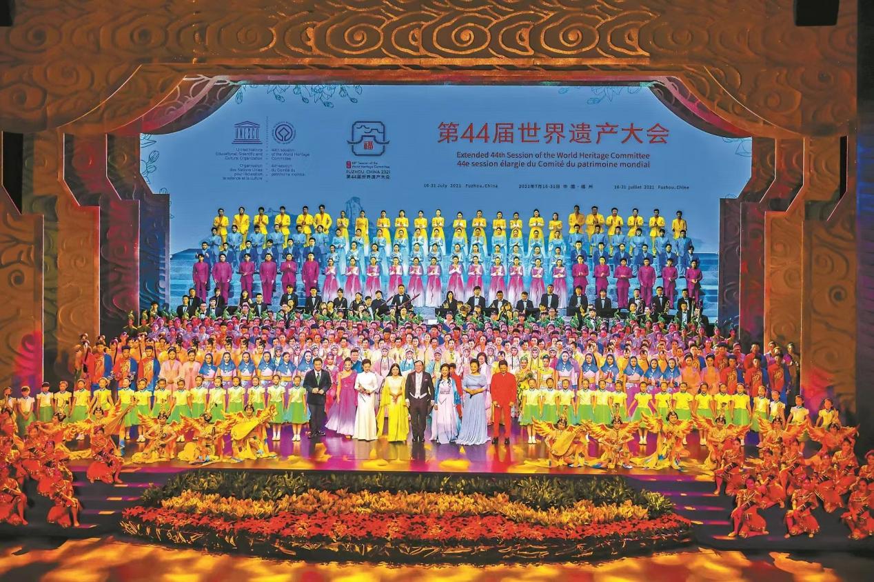 2021年7月艺术团近200名学生参加第44届世界遗产大会开幕式文艺演出,参演了序幕乐舞《福迎八方》和尾声歌舞《命运与共》,在世界遗产大会的历史舞台上留下了属于自己的青春诗篇。
