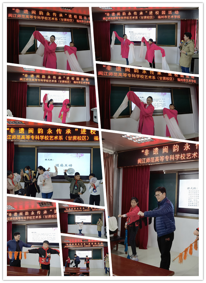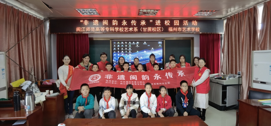2021年11月24日,在福州市委文明办的指导下,闽江师范高等专科学校艺术系(福州市艺术学校)教师支部3名党员教师赴闽侯县小箬中心小学进行“非遗闽韵永传承”文化艺术进校园活动。