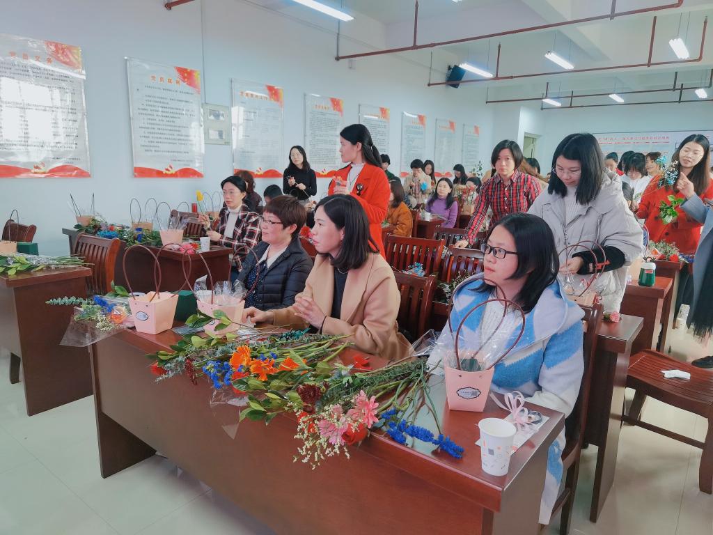 为进一步丰富女职工的精神文化生活,增强大家归属感、幸福感,3月8日下午,校工会在旗山校区党员活动室举办“春暖花开 美好如你”女职工学花艺鉴赏活动。我系女教职工积极参与其中。在花艺师的耐心指导下,老师们纷纷拿起玫瑰花、康乃馨、满天星等各类鲜花,修枝剪叶,构思装点。一枝一叶总关情,看着由自己精心搭配而成的花艺作品,大家欣喜之情油然而生。在五彩斑斓的花海世界里,老师们的脸上不禁洋溢出幸福的笑容。