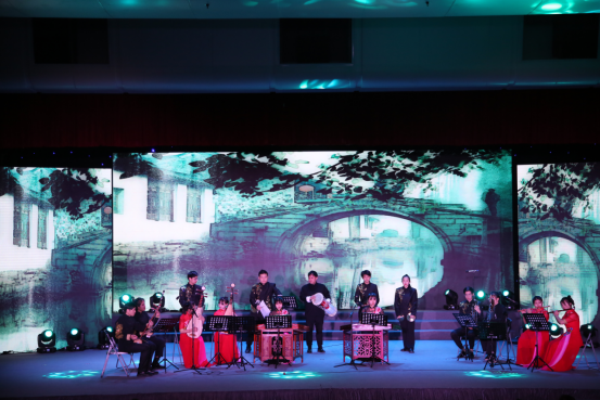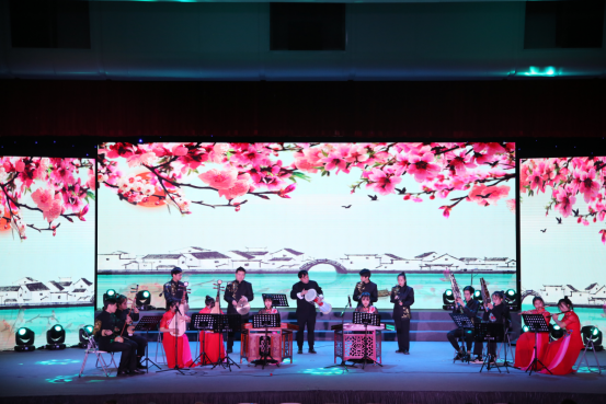 此次展演,我校艺术系带来的《秦楼古乐》是十番音乐传统代表曲目,用十番打击乐、丝竹乐“分堂”、“夹腹”的表演形式呈现。乐曲古朴悠扬,节奏顿挫分明,速度变化井然。眼前仿佛出现古时大街节庆时节,“十番”队伍且行且奏、载歌载舞的场面。
