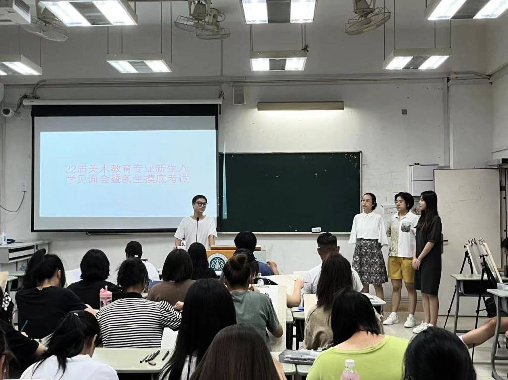 为帮助2022级美术教育新生更好地了解闽江师范高等专科学校与艺术学院,加深对专业的认识和了解,激发新生专业学习的浓厚兴趣,尽快适应大学学习和生活,也为了帮助专业教师更深入地了解学生专业水平,2022年9月27日晚,美术教育专业召开2022级新生入学见面会暨新生摸底考试活动。