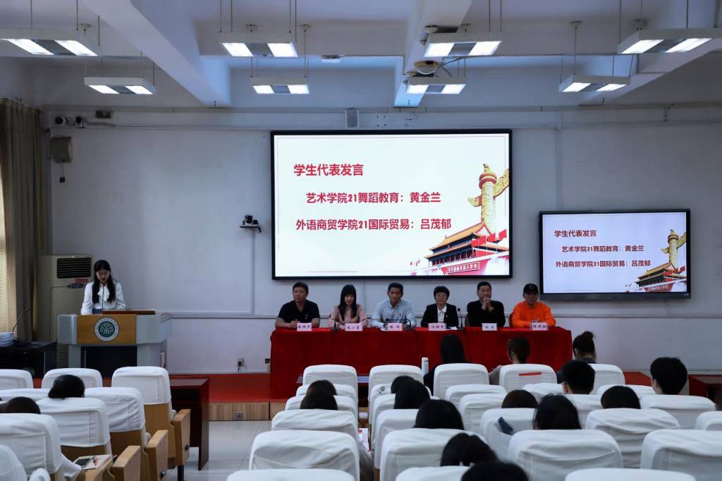艺术学院21舞蹈教育黄金兰和外语商贸学院21国际贸易吕茂郁同学分别作为入党积极分子代表发言。她们表示在培训期间,将做到按时上课,认真做好笔记;遵守纪律,严格要求自己,树立入党积极分子的良好形象,争取早日成为一名合格的共产党员。