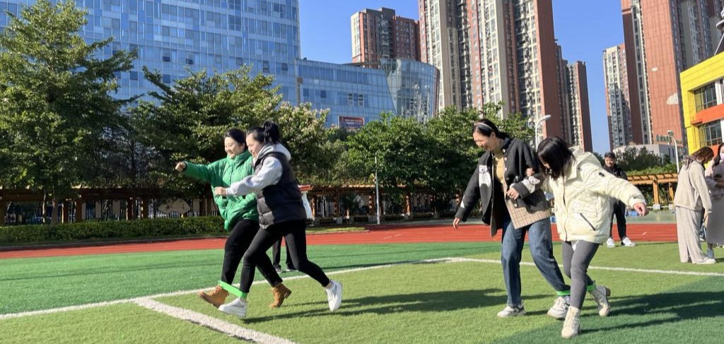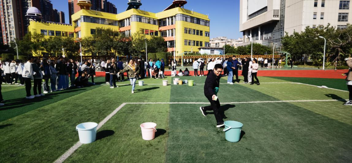 趣味游园活动共设置了跳绳、吹乒乓球、投篮、南水北调及两人三足等五个项目。活动项目充满趣味性、娱乐性及技巧性。有的看技巧、有的比速度。现场加油声、喝彩声不断,热闹非凡。在轻松愉快又不乏刺激的氛围中,大家既锻炼了身体,又放松了身心。老师们不禁感叹,“好久没这么轻松自在了。”“在运动中享受冬日的暖阳,感受团结合作、默契配合带来的愉悦,真好!”……趣味游园活动在老师们的欢声笑语中圆满结束。