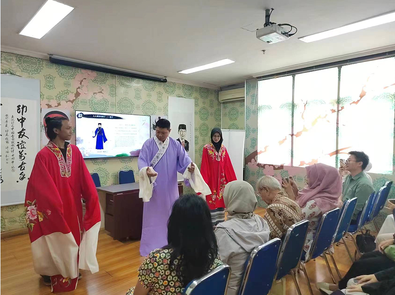 签约仪式结束后,林理杰为孔子学院师生开展了主题为《中国传统文化戏曲》的讲座。林理杰详细地讲解与有趣的表演互动,让师生们近距离感受到中国戏曲的独特魅力。这场授课活动不仅让印尼师生们对中国传统文化有了更深刻的认识,也增进了他们对中国文化的兴趣和喜爱。