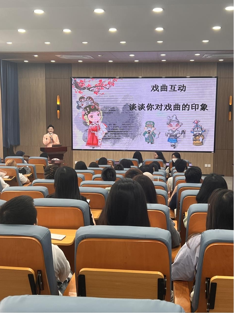 为进一步提升海外留学生对中国传统戏曲艺术的了解与兴趣,助力中华优秀传统文化的传播与弘扬,5月15日下午,我校艺术学院与福建师范大学海外教育学院联合开展了一场别开生面的戏曲文化艺术沙龙活动。共有45名来自师大海外教育学院的国外留学生参加。