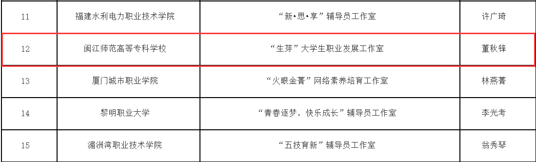 福建省高校辅导员名师工作室入选名单