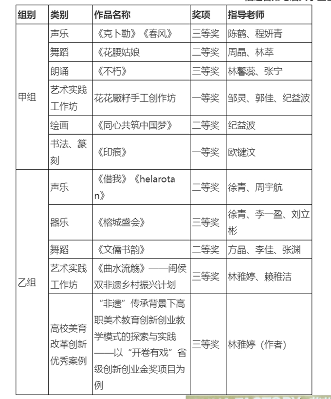 福建省第七届大学生艺术节获奖名单
