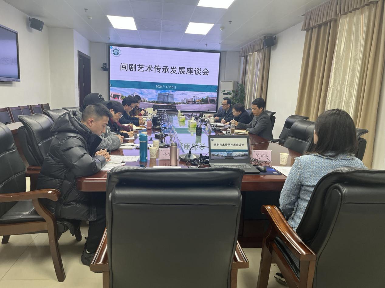 为牢记习近平总书记的殷殷嘱托,坚持将办闽剧学校的路子走下去,推动闽剧艺术繁荣发展,1月10日下午,学校在旗山校区召开闽剧艺术传承发展座谈会。校党委书记林子波、校长杨建义、副校长陈强,非遗名师陈乃春,党政办公室、宣传统战部、教务处负责人,艺术学院党政领导及闽剧专业教师代表参加会议。会议由陈强主持。