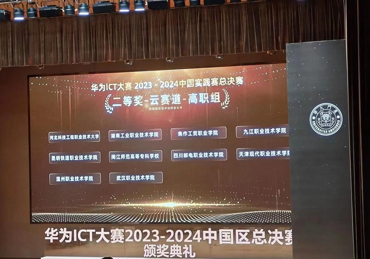 近日,华为ICT大赛2023-2024中国总决赛暨颁奖典礼在福建厦门圆满落幕。由我校数字信息工程学院学生方艺娜、叶晓虹、林世锦(大数据技术专业)3位同学组成的队伍,在李翔宇老师的悉心指导下,代表福建省参加华为ICT大赛2023-2024中国区决赛,经过激烈角逐,获得了中国区实践赛(高职组云赛道)总决赛全国二等奖的好成绩。
