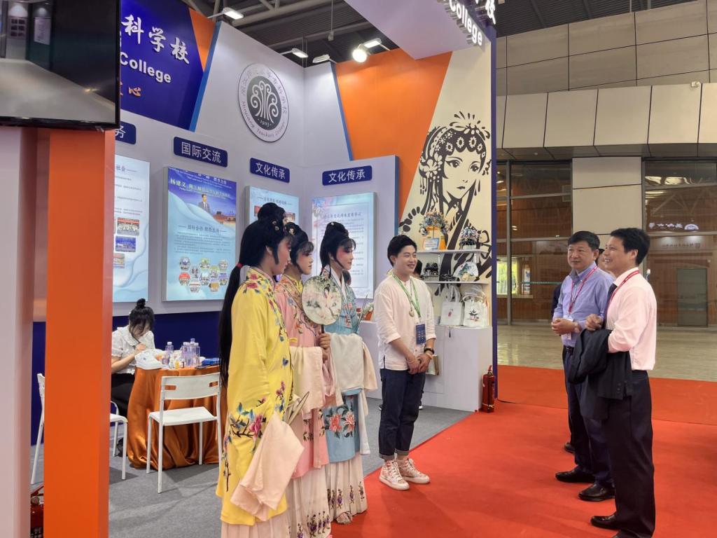 本次高博会主要由展览展示和高质量学术交流活动两大板块构成。我校通过图片、音视频、文创实物、闽剧现场展示等多种形式,介绍在专业建设、产教融合、社会服务、国际交流、文化传承等方面取得的成果,全景式展现了学校服务国家战略、服务区域社会经济文化发展的扎实举措。布展主题突出、内容丰富、形式多样,吸引众多参展人员观看交流,获得职业教育同行及教育领域相关企业的认可与赞誉。