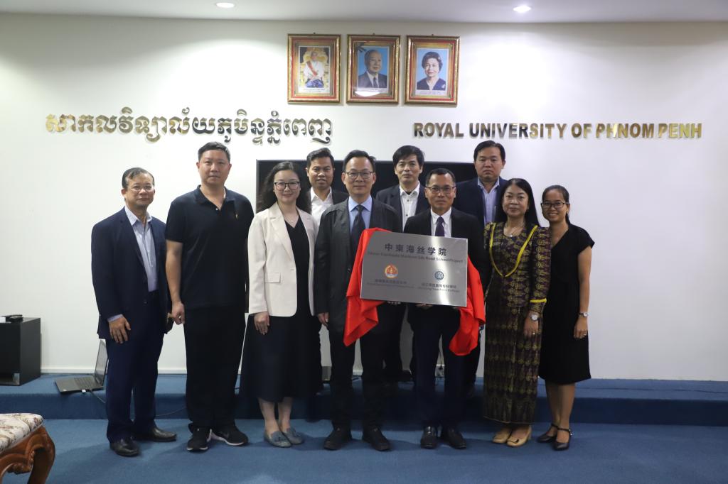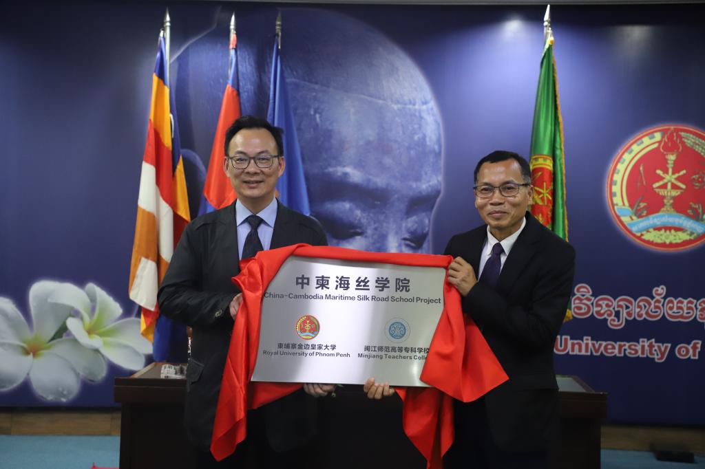 随后,双方签署校际合作备忘录,并共同为“中柬海丝学院”揭牌。