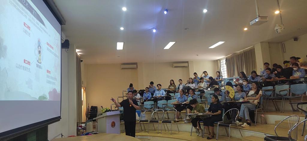 5月3日上午,我校艺术学院副院长林理杰在柬埔寨金边皇家大学举办中国戏曲文化讲座。共有62名来自该校外语学院中文系学生参加。