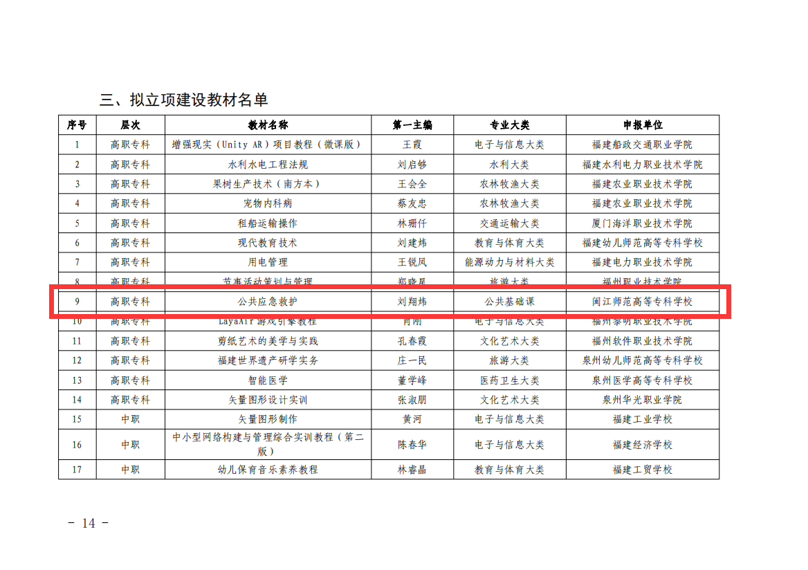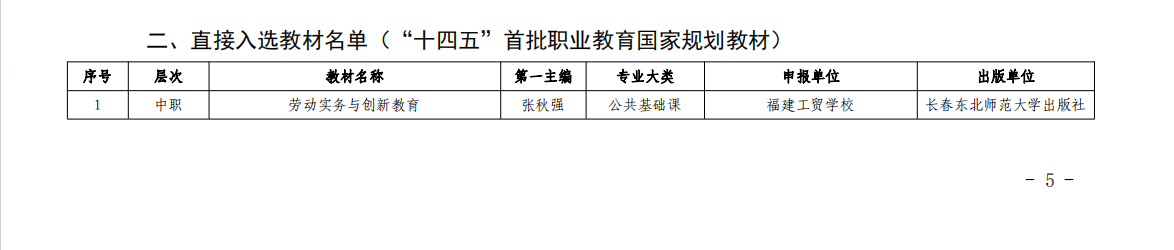 日前,福建省教育厅公示福建省“十四五”职业教育省级规划教材拟入选和立项建设名单,经过单位申报、形式审查、专家评审等严格程序,我校数部教材在众多参评作品中脱颖而出,取得了令人瞩目的成绩,为我校职业教育教材建设书写了新的篇章。